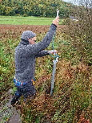 Durch den Klimawandel werden die Sommer trockener. Darunter leider Feuchtgebiete – und könnten gleichzeitig wichtige Pufferfunktionen erfüllen. Moore können Wasser speichern und somit auch im Sommer noch kühle Frische bereitstellen. Durch seine Schwammfunktion kann intakter Torfboden auch Hochwasserspitzen abpuffern. Neben der hydrologischen Funktionalität schauen wir uns im Projekt auch die biologische Funktionalität an – sind die Lebensräume in gutem Zustand und passend miteinander vernetzt, sodass sich z.B. Populationen von Ameisenbläulingen oder verschiedenen Vögeln gut entwickeln können? Zur Untersuchung nutzen wir verschiedenen Methoden und führen die Ergebnisse und Erkenntnisse zusammen. Wir von der SNU schauen uns dabei besonders die Moorböden, aber auch Wasserstände und Vegetation an, um die Funktionalität der Pilotflächen einzuschätzen und in Zukunft verbessern zu können. |